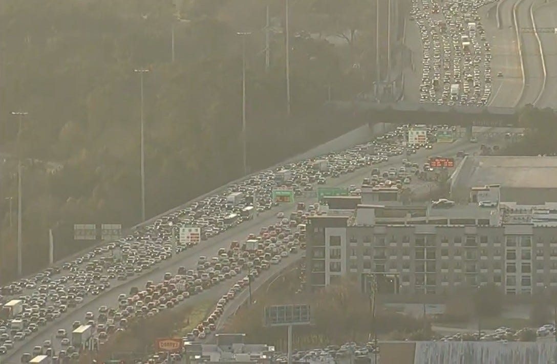 For an example of this fix, we can look to none other than the glorious Katy Freeway in the common-sense state of Texas, USA. In 2008 they decided to go big: who needs ‘just one more lane’ when you can instead have 26 of them? As we all know, this solution permanently fixed their traffic problems and Texans no longer need to sit stuck in traffic for hours. Right?